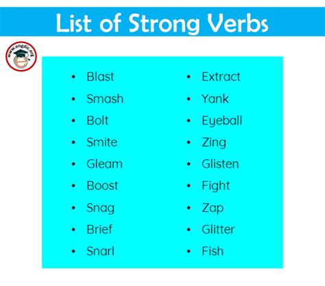 Strong Verbs List - Learn how to use strong verbs to make your writing more vivid, specific, and powerful. Learn how to replace weak and flabby verbs with vivid and strong ones to improve your prose. Learn what strong verbs are and how to use them to improve your writing. Learn how to use strong verbs to make your writing more impactful and vivid..